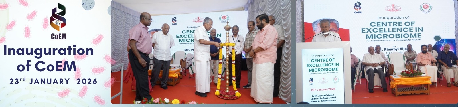 The Centre of Excellence in Microbiome (CoEM) is an initiative of the Government of Kerala, established under the aegis of the Kerala State Council for Science, Technology and Environment (KSCSTE), in association with the Kerala Development and Innovation Strategic Council (K-DISC) and the scientific mentoring of the Rajiv Gandhi Centre for Biotechnology (BRIC- RGCB). CoEM aims to foster cutting-edge research and entrepreneurship across diverse microbiome domains—human, animal, plant, aquatic, and environment. With the motto “Microbes for Life,” the Centre is dedicated to harnessing the potential of microbial communities to drive innovation and ensure a sustainable future.